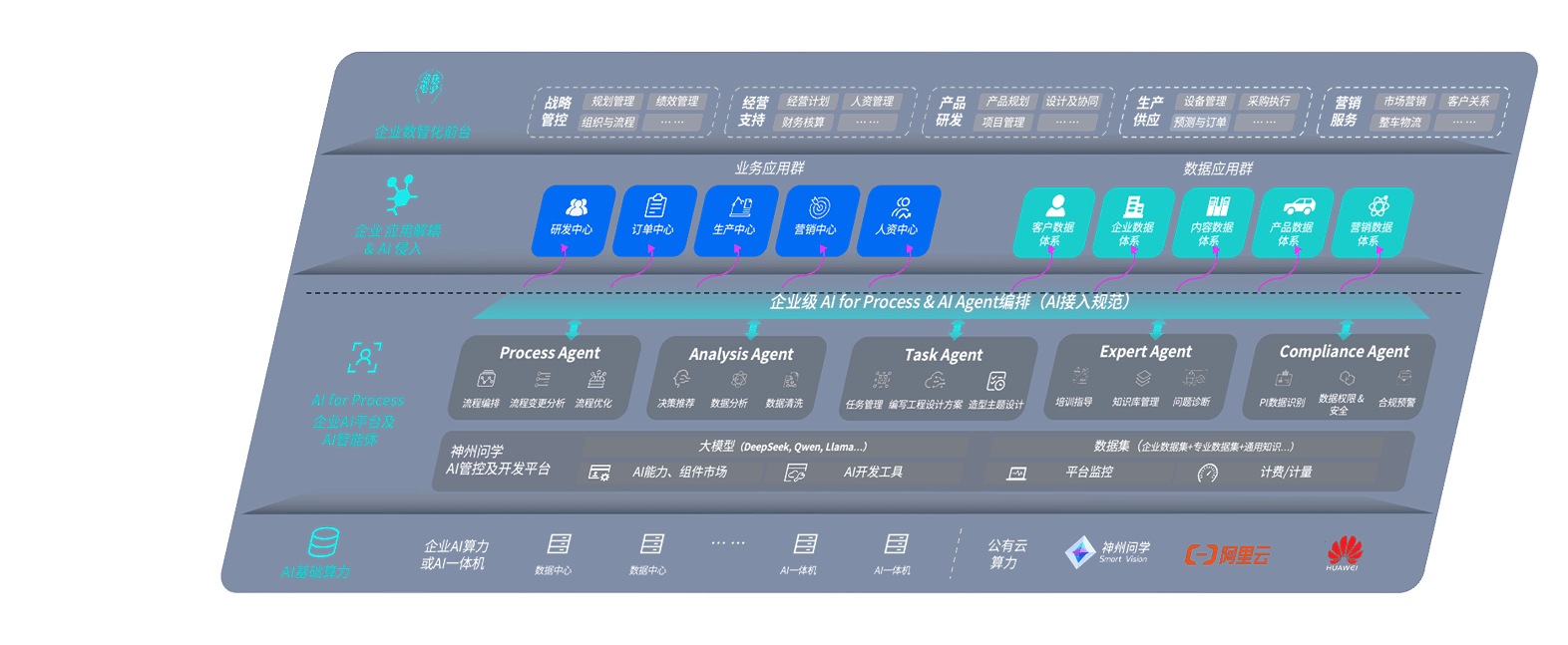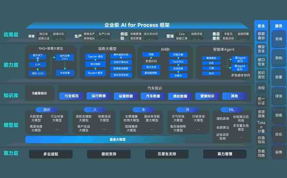 旺财28问学智车解决方案是一套基于AI技术的汽车行业智能化系统,,覆盖从底层算力到顶层AI应用的全栈方案。。方案由算力层、、、、模型层和应用层组成:算力层,,,方案支持多种一体机配置,,,具备云端灵活部署、、、、多云适配以及动态优化计算资源的能力;模型层,,旺财28问学平台版提供了企业级AI应用一站式构建与管理平台,,支持基于后训练强化技术的汽车企业专属模型的训练、、评测和运营;应用层,,,,旺财28问学DeepSeek版提供包括超级员工、、智能招采、、、智能营销、、、、智能客服、、、、AI for BI等一系列解决方案,,,可助力汽车行业实现数字化转型,,,,让管理更智能、、响应更敏捷。。。