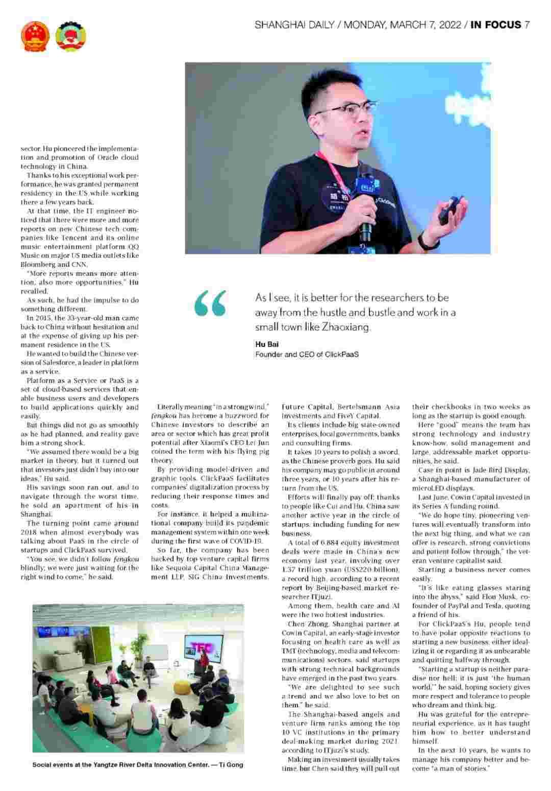 在正在进行的两会上,,,,,,,,高质量增长和乡村振兴是国家立法者和政治顾问的热门话题,,,,,,,,,,,,,而长三角地区的发展已成为这方面的指南。。。。。在上海市青浦区赵巷小镇,,,,,,,,,,,地处长三角中心地带,,,,,,,,,,,,良好的自然环境和创业环境吸引了众多有志创业者。。。。。。